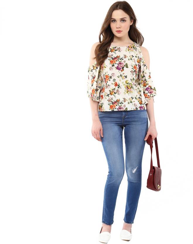Harpa White Women Printed Tops 100% Polyester hand Wash in cold Water. Dry in shade for Lasting Color