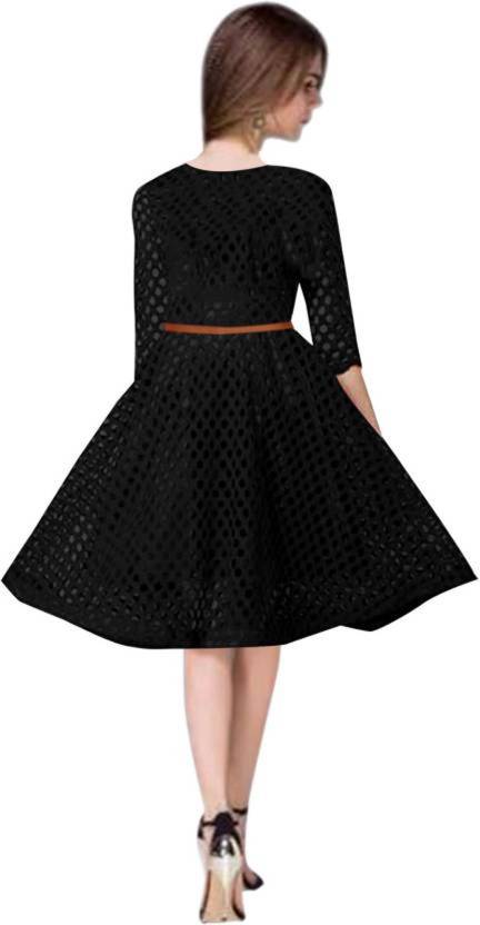 NetraFashion Women's Fit and Flare Black Dress